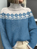 Women's Floral Blue-Green Winter Casual Turtleneck Sweater