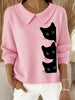 Women's Funny Cat Print Cat Lovers Casual Baby Doll Collar Top