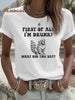 Women's Funny Raccoon First of All I'm Drunk Iron On Short Sleeve T-Shirt