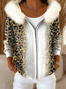 Women's Leopard Print Fur-Trimmed Hooded Jacket