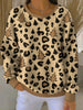 Women's Leopard Print Thanksgiving Loose-Fit Crewneck Pullover