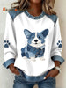 Women's Lovely Corgi Pattern Denim Patchwork Sweatshirt