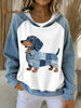 Women's Lovely Dachshund Dog Pattern Denim Patchwork Hoodie