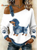 Women's Lovely Dachshund Pattern Denim Patchwork Top