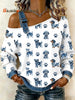 Women's Lovely Dog Pattern Denim Patchwork Top