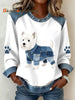 Women's Lovely West Highland White Terrier Pattern Denim Patchwork Sweatshirt