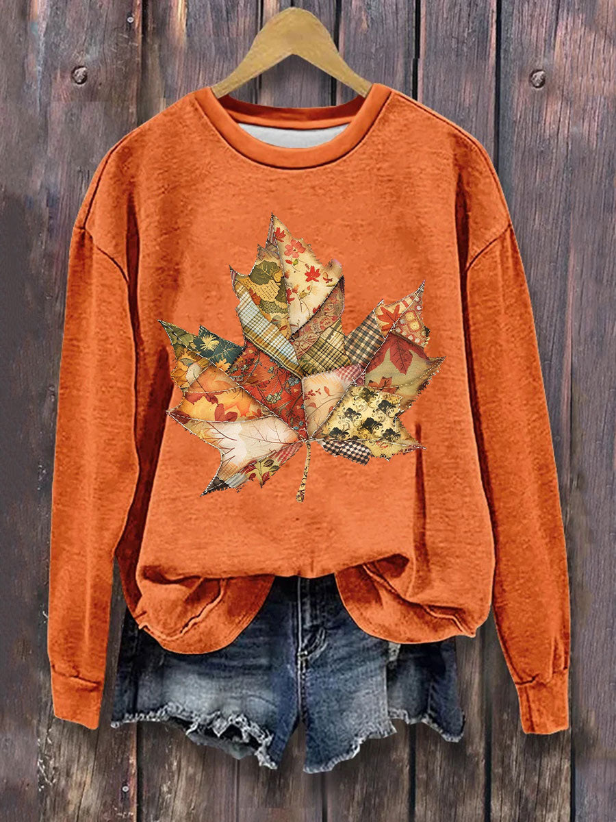 Women's Maple Leaf Art Print Casual Sweatshirt