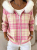 Women's Pink Plaid Pattern Cozy Furry Cardigan