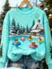 Women's Retro Animal Christmas Art Print Casual Flannel Top