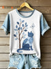 Women's Retro Cat Patchwork Print Casual Short Sleeved T-Shirt