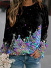 Women's Retro Christmas Art Print Casual Sweatshirt