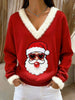 Women's Retro Christmas Santa Claus Blowing Bubbles Loose Long Sleeved Fur-Trimmed Sweater