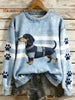 Women's Retro Denim Patchwork Animal Art Print Casual Comfort Long-Sleeve Sweatshirt