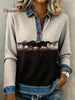 Women's Retro Horse Art Print Denim Patchwork Top