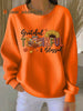 Women's Retro Thanksgiving GOBBLE Print Ribbed Round-Neck Sweatshirt