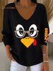 Women's Retro Thanksgiving GOBBLE Print V-Neck Ribbed Top