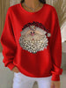 Women's Santa Claus Printed Ribbed Round-Neck Sweatshirt