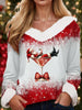 Women's Santa Claus sitting on a red wine glass with a printed fur collar top