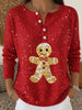 Women's Shiny Christmas Print Henley Neck Color Sweater Top