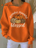 Women's Thankful Grateful & Blessed Thanksgiving Ribbed Round-Neck Sweatshirt