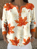 Women's Thanksgiving Abstract Vintage Maple Leaf Art V-Neck Top