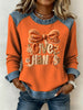 Women's Thanksgiving Bow Floral Art Casual Waffle Weave Top
