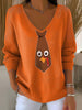 Women's Thanksgiving Funny Turkey Print V-Neck Top
