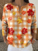 Women's Thanksgiving Houndstooth Maple Leaf Art V-Neck Top