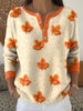 Women's Thanksgiving Maple Leaf Art V-Neck Top