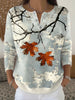 Women's Thanksgiving Maple Leaf Casual Henley neck sweater