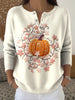 Women's Thanksgiving Pumpkin Floral Art V-Neck Sweater