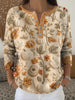 Women's Thanksgiving Pumpkin Floral Art V-Neck Top