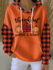Women's Thanksgiving Pumpkin Plaid Patchwork Art Casual Hoodie