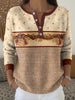 Women's Thanksgiving Vintage Plaid Patchwork Art V-Neck Top