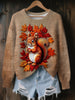 Women's Vintage Autumn Fallen Thanksgiving Squirrel Print Art Casual Knitted Sweater