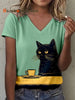 Women's Vintage Cat Art Print V-Neck T-Shirt