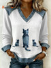 Women's Vintage Cat Patchwork Print Casual V-Neck Sweatshirt