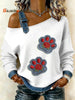 Women's Vintage Cat Paw Patchwork Print Casual Off-Shoulder Sweatshirt