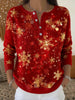 Women's Vintage Christmas Gold Snowflake Art V-Neck Top