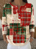 Women's Vintage Christmas Patchwork Henley neck sweater