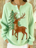 Women's Vintage Christmas Reindeer Print Long-sleeve Sweater