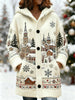 Women's Vintage Christmas Snow Scene Print Casual Hooded Mid-Length Cardigan