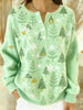 Women's Vintage Christmas Tree Bell Art Print Long-sleeve Sweater