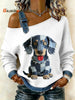 Women's Vintage Dog Patchwork Print Casual Off-Shoulder Sweatshirt