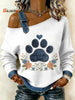 Women's Vintage Dog's Paw Patchwork Print Casual Off-Shoulder Sweatshirt