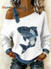 Women's Vintage Fish Patchwork Print Casual Off-Shoulder Sweatshirt