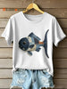 Women's Vintage Fish Patchwork Print Casual T-shirt