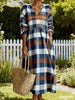 Women's Vintage Plaid Pattern Cozy V-Neck Dress