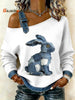 Women's Vintage Rabbit Patchwork Print Casual Off-Shoulder Sweatshirt