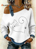 Women's Vintage Simple Cat Patchwork Print Casual Off-Shoulder Sweatshirt